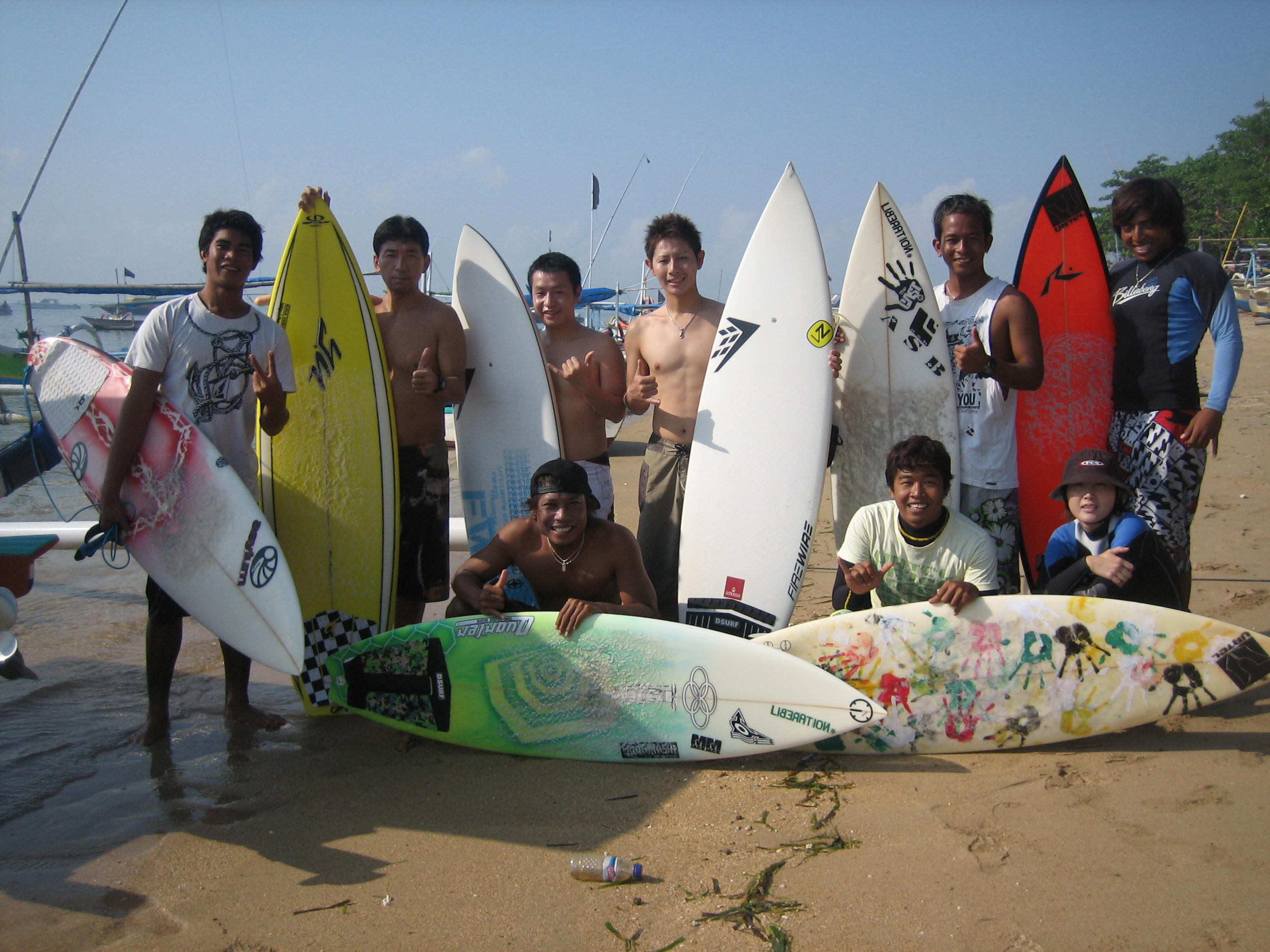 今日は三日ぶりのサーフィンです。ホリコシさん、トモ、3人でサヌールのSHINDUリーフではいりました。昨日よりは上がったけどあたまぐらいでした。みんなで6人だけでのりほうだいでだいまんぞく!