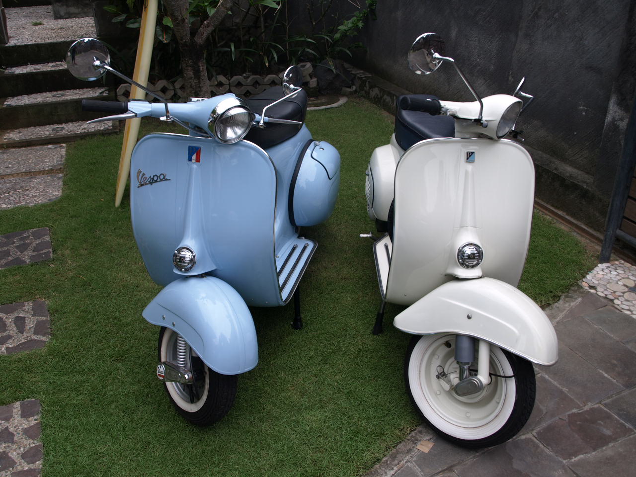 こんばんは!キナです。みなさん元気ですか???このバイクは僕が大好きなレトロベスパです。1963、1966年のものでちかばの海に行く時はよくのってます。こんど来られたら後ろにのせてあげますね。走るかなぁ?(笑)