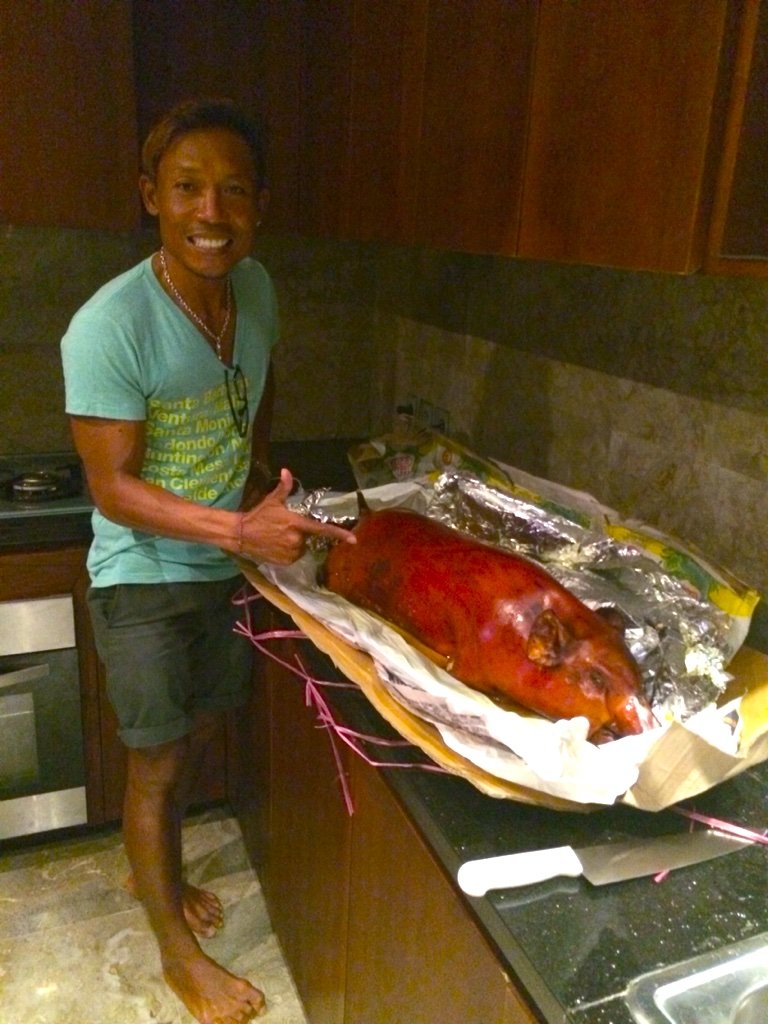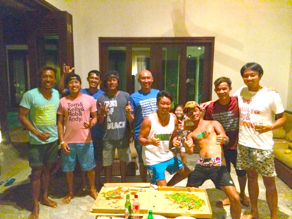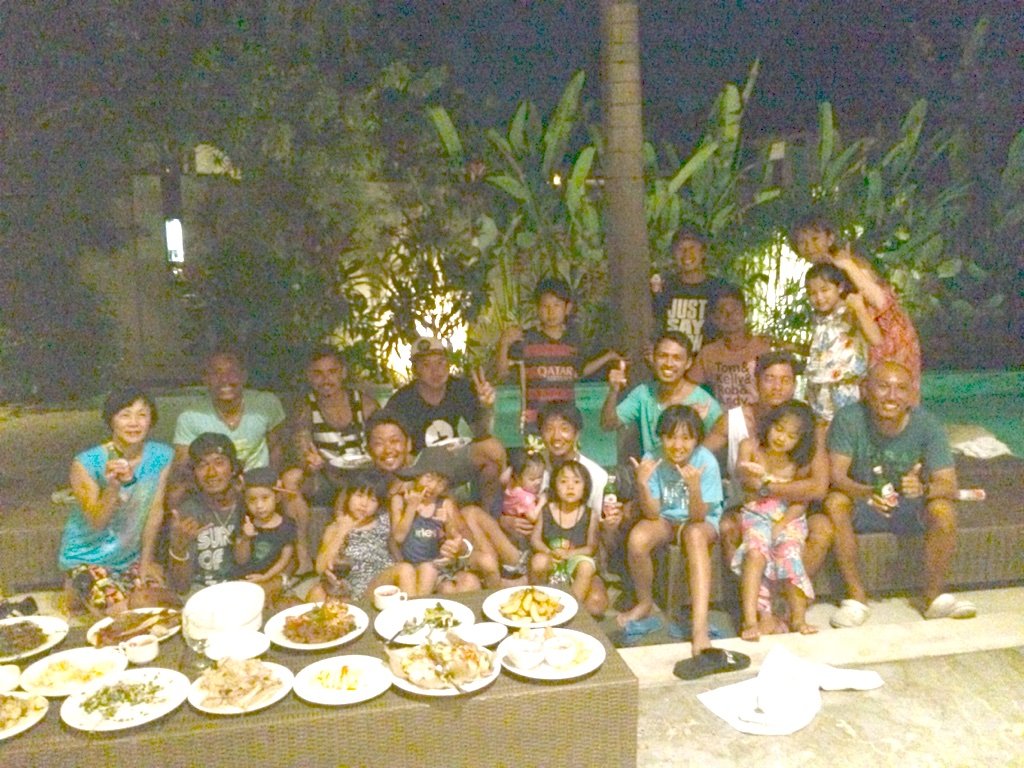 バリ島サーフィンキナ、今日はサーフィンした後に夕方にビラビラパーティーをしました。BABI GULING 最高っす!