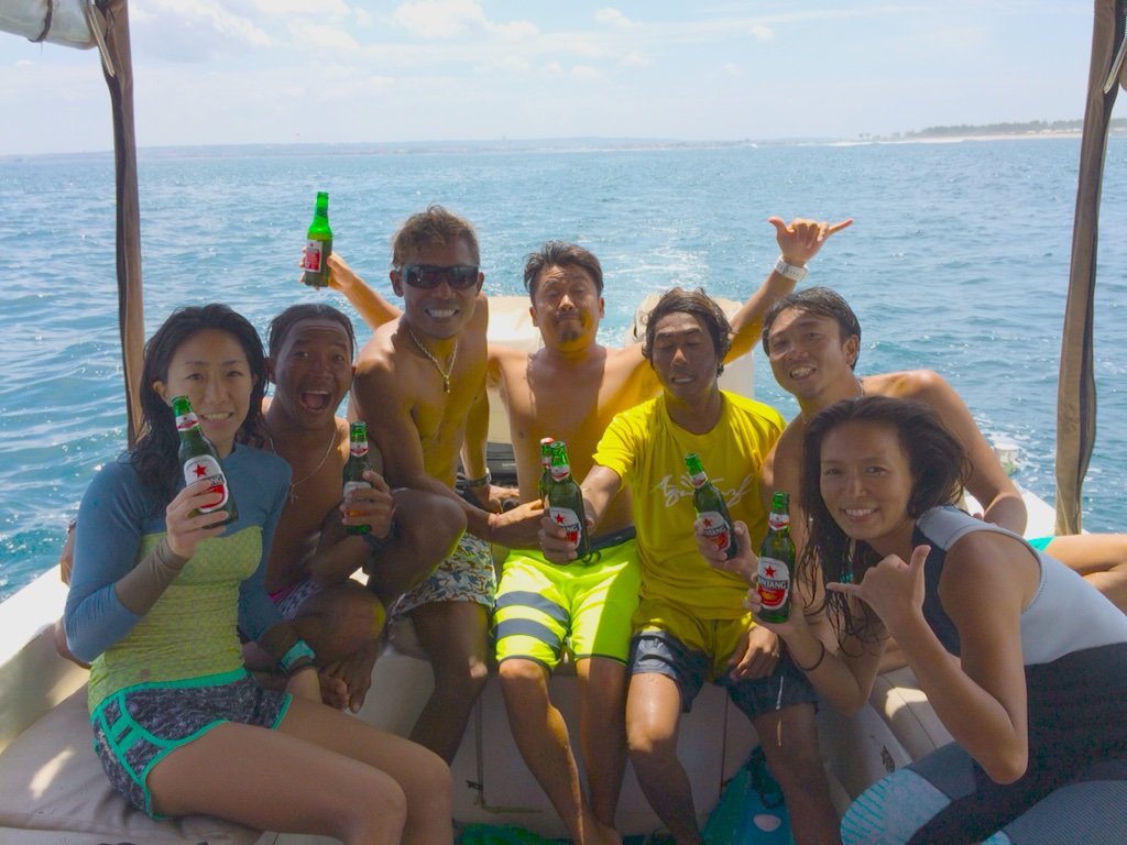 バリ島サーフィンキナ、今日はボートトリップでたんけんサーフィン!サヌールリーフからヌサドゥアのニッコポイントまでスピードボートで行きました。波も良くて、すぐポイントだし、終わったあとのビンタンも最高にうまいっす!また来年もしたいですね。宜しくお願いします。
