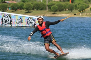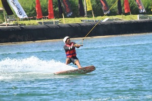 を差し上げます。この遊びも初めてやって見ました!ケブルWAKE BOARDINGです。最高に楽しかったですよ。